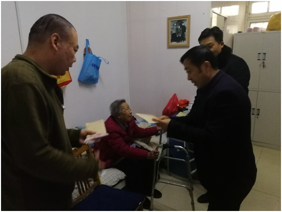 院长李怀章及院领导走访离退休老同志,除夕走访慰问值班岗位的同志,送温暖,给住院康复疗养人员送去除夕水饺、水果等慰问品。
