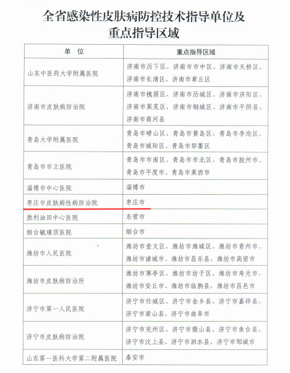 枣庄市皮肤病性病防治院被评为省级区域性感染性皮肤病防控技术指导单位