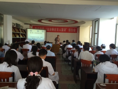 9月1日下午,市立四院在门诊楼四楼会议室举办“法治枣庄百人宣讲”活动。本次活动特邀医院法律顾问李国旗律师授课,党委副书记席强主持,医院干部职工80余人参加。 本次报告会是为了认真贯彻党的十八大和十八届四中、五中全会精神及习近平总书记系列重要讲话精神,宣传法律知识,增强法治意识,营造法治氛围,着力弘扬社会主义法治精神、培育和践行社会主义核心价值观,推进“平安枣庄”、“法治枣庄”建设。 李律师紧紧围绕医务人...