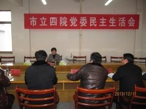 12月24日上午,枣庄市立四院党委召开了2013年度民主生活会。本次民主生活会以“为民务实清廉”为主题,以“反对‘四风’,服务群众”为重点。我院领导班子全体成员参会,滕州市墨子研究中心主任邵长婕莅临指导。会议由党委书记李怀章主持。为高质量高标准开展好此次民主生活会,院领导高度重视,认真做好会前各项准备工作。制定了民主生活会实施方案,通过集中学习、广泛征求意见、班子成员谈心等形式,收集对领导班子的意见建议10...
