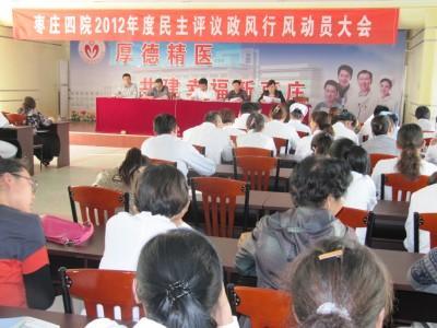枣庄市皮肤病性病防治院召开行评动员会10月10日下午,枣庄市皮肤病性病防治院2012年度民主评议政风行风活动动员会议在院三楼会议室召开。院领导班子成员、行管科室全体人员、职工共100余人参加了会议。会议由党委副书记席强同志主持。会上,纪委书记殷宜文同志传达了枣庄市委、市政府和市卫生局2012年度民主评议政风行风活动会议精神,并对今年我院的民主评议政风行风活动进行了安排部署;皮科主任李金辉同志、康复科主任宗岚同志...